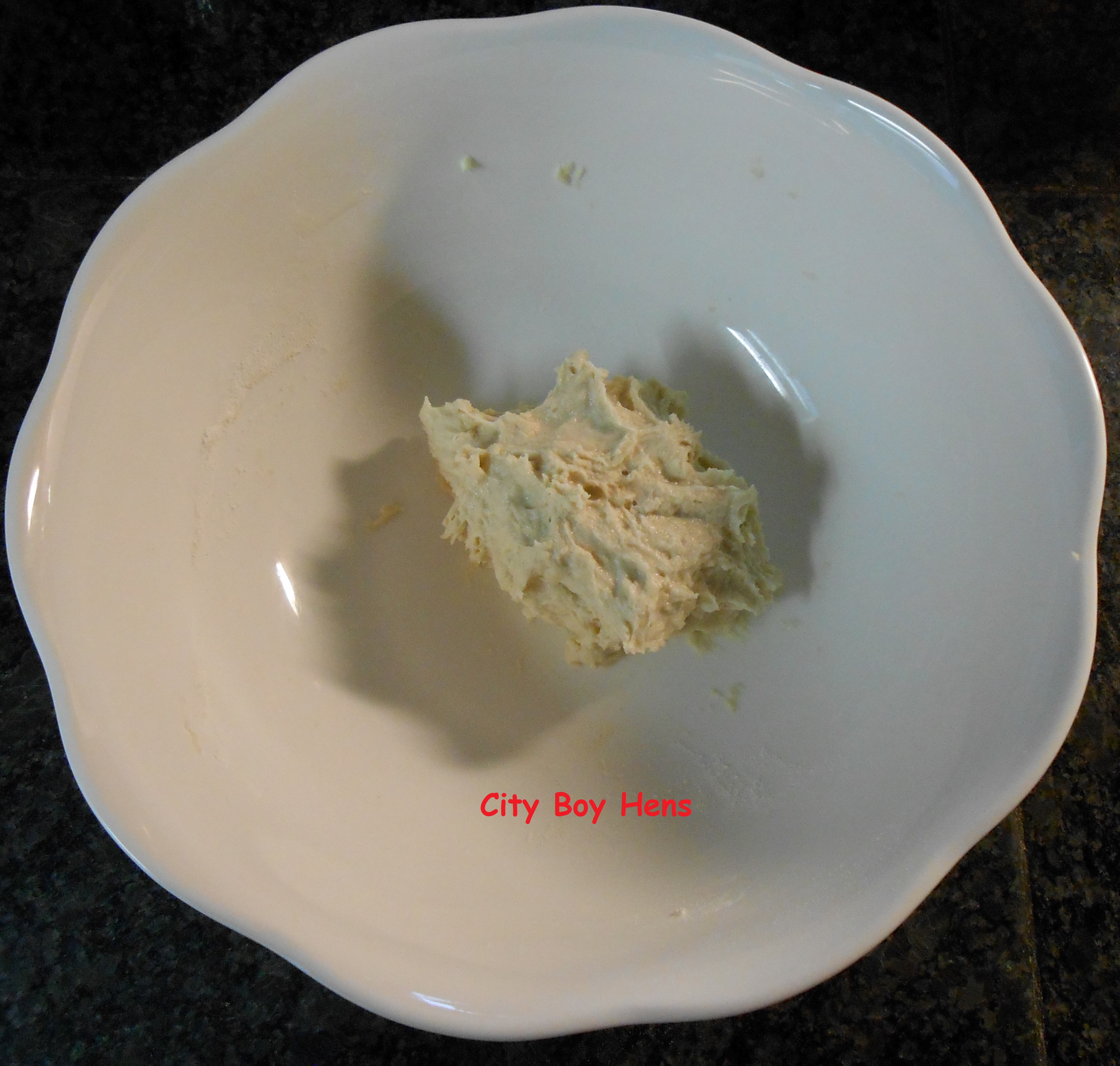 If you’re not familiar with making a sponge….DON’T PANIC. It’s really EASY! All you’re going to do is combine the warm water, sugar, salt, and yeast in a small bowl. Stir it up and leave it for around 10 minutes in order to let the yeast dissolve. Next, stir in the flour. It will end up feeling pretty sticky and looking like the picture below.