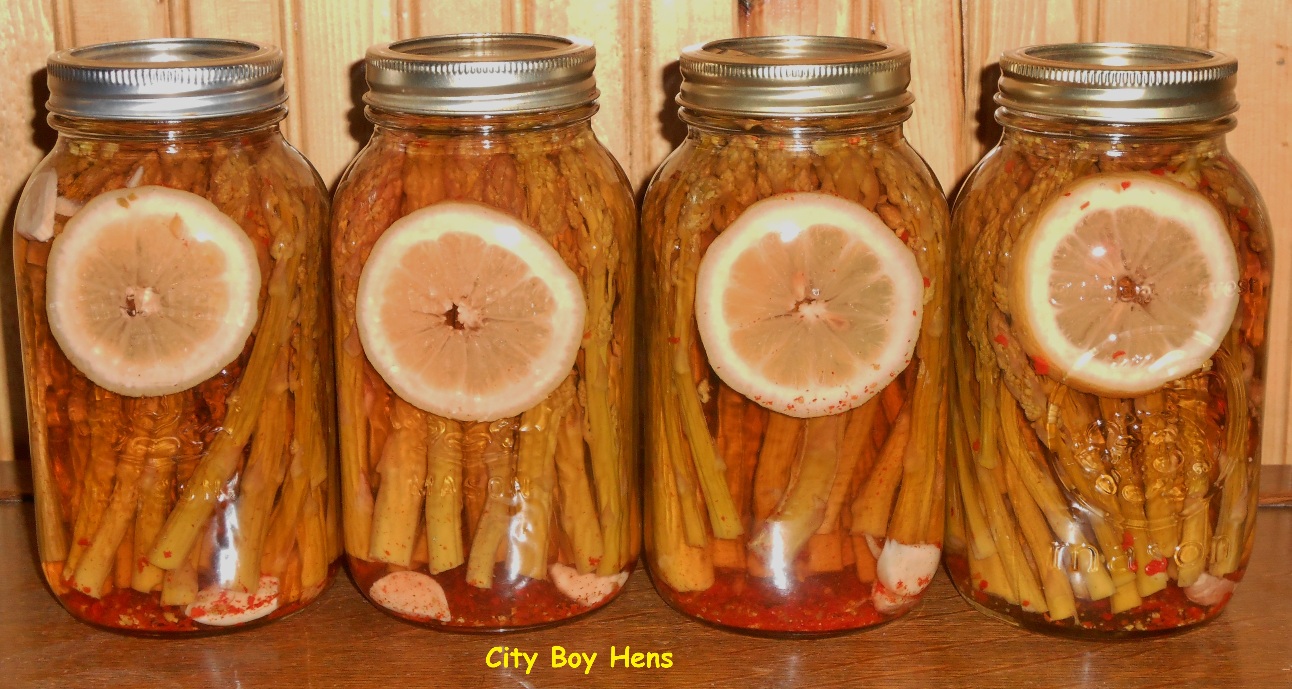 Canning season officially starts at City Boy Hens with pickled asparagus. Around here, it is included in our antipasto, the “topper” to “special events” salads, a great addition to any sandwich or just as a pickled treat with dinner.