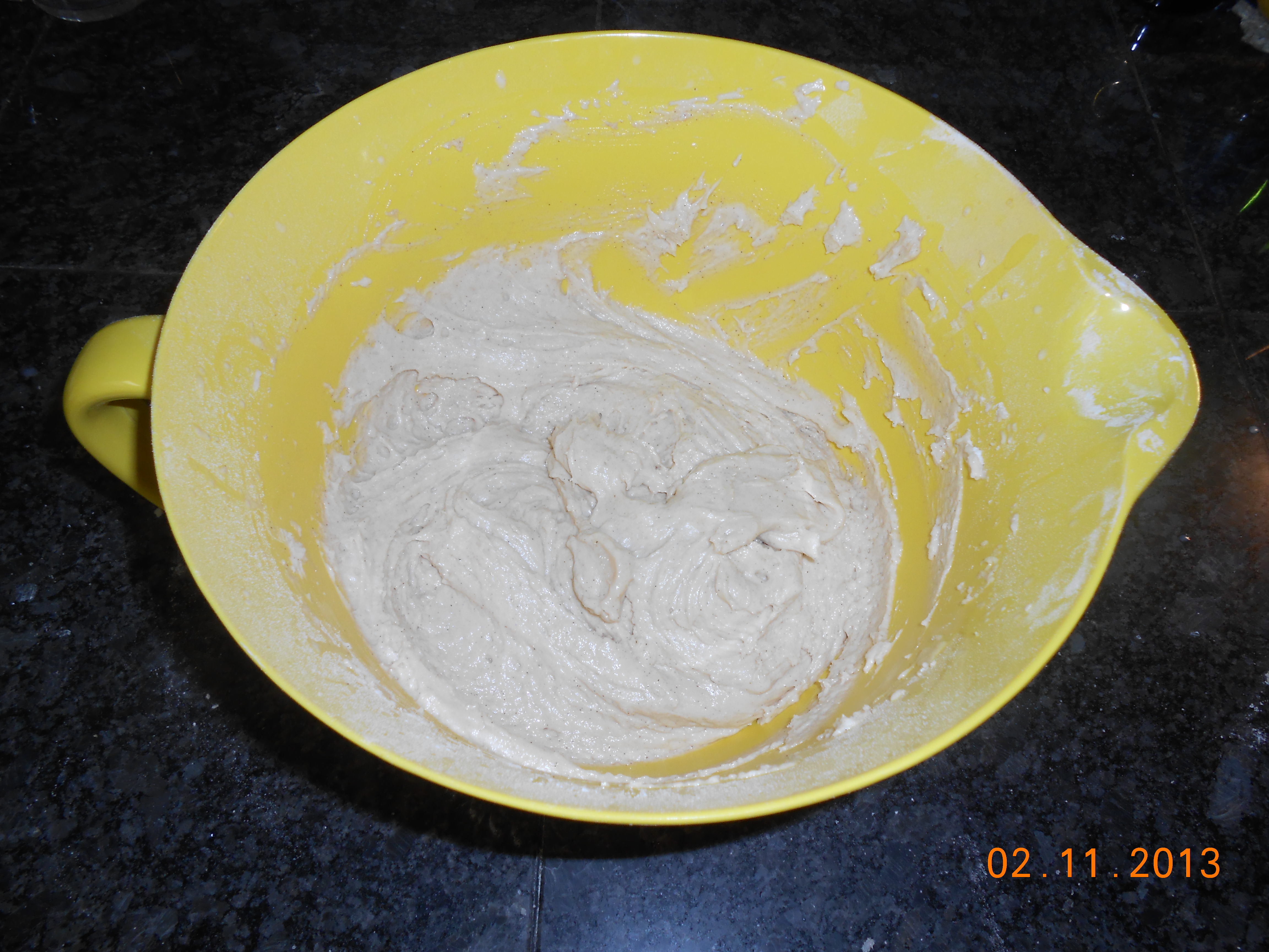 Once the final “thirds” have been added, beat the batter for 1 more minute.